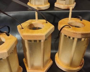 wykonane z drewna olchy oraz skóry pergaminowej z sarny.